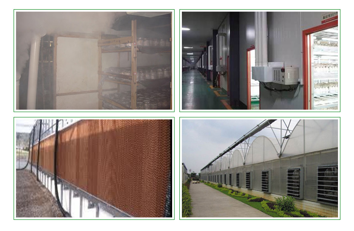 通風降溫對食用菌的作用性:多數情況下,溫度在20-25℃、濕度在50-70%是我們希望在溫室內維持的植物生長環境。溫室內溫度過高,會造成植物生長不良,品質下降,甚至死亡。在炎熱天氣下,由于熱傳導、熱輻射,未采取降溫措施的溫室內溫度要高于外界氣溫1 0-20℃,生產活動無法正常進行。因此采取有效的降溫措施是取得夏季溫室生產高產、穩定的途徑。 “濕簾-風機”的縱向通風降溫組合是經濟、有效的溫室夏季降溫措施。