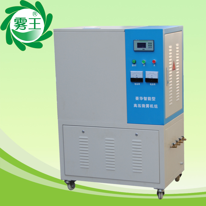 1、自動高壓噴霧加濕機組是由水過濾、水溫控制(選裝)、水位控制、恒壓供水、多管路輸水、智能儀表濕度控制等組成的機電產品。自來水經過濾器送入水箱,水箱設有上下水位控制系統,并設有水溫加熱及溫度控制系統;凈化水進入高壓泵、高壓管路、噴嘴形成高壓噴霧系統,高壓水泵由電機驅動,智能儀表、濕度傳感器、高壓電磁閥組成濕度控制系統。